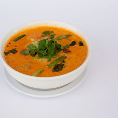 (24 oz.) Classic Thai hot & sour soup with lemongrass, galangal, kaffir lime leaves, mushrooms and your choice of protein. Bold, zesty, and aromatic.